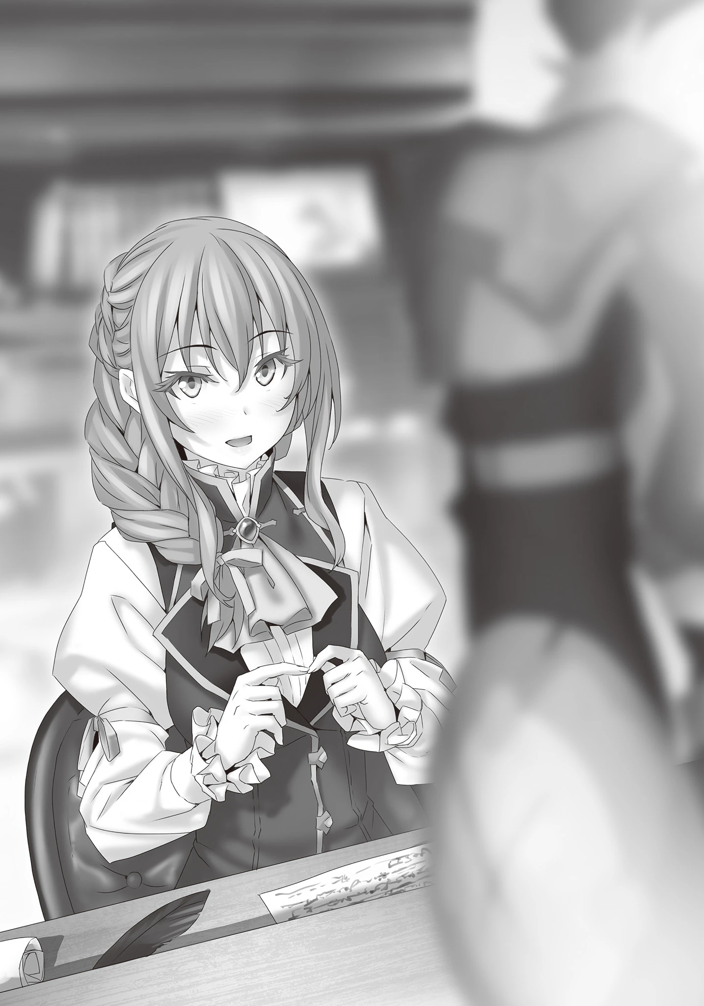 Some time later, she asked Goblin Slayer and an Inspector to help her in a promotion interview with several adventurers, with Rhea Scout being the first. After they deduce that Rhea Scout had been stealing treasure behind his group's back, she demoted him to porcelain rank and banned him from adventuring. After Goblin Slayer left the room, she admitted to her colleague, Inspector, that she had feelings for Goblin Slayer.