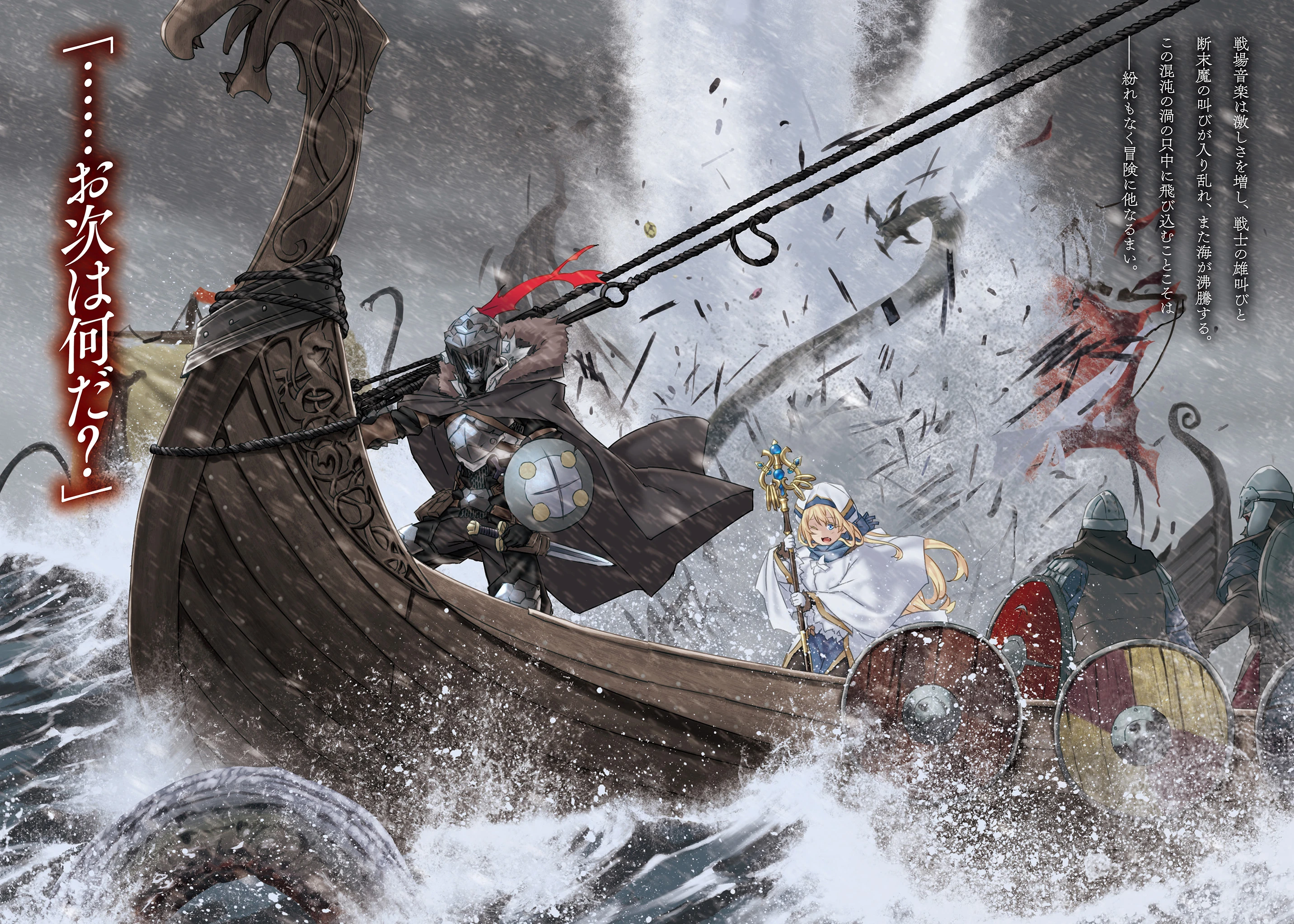 As the Sea-Devil rises it's tentacles from the depths, attacking Goblins and Vikings alike, the Viking Chieftain asking Goblin Slayer if he had a plan to get him close enough to strike the beast. Goblin Slayer formulates a plan to use Dwarf Shaman's Water Walk to force the Sea-Devil to the surface so they can strike its main body. Lizard Priest creates a pair of Dragontooth Warriors to act as the Viking Chieftain's guards as they race towards the Goblin Ship that is above the Sea-Devil's main body. As they charge through the mess of tentacles and ships, the Party realizes Goblin Slayer has yet to throw his new Viking Sword away much to their confusion, as throwing his weapons has always been his style.