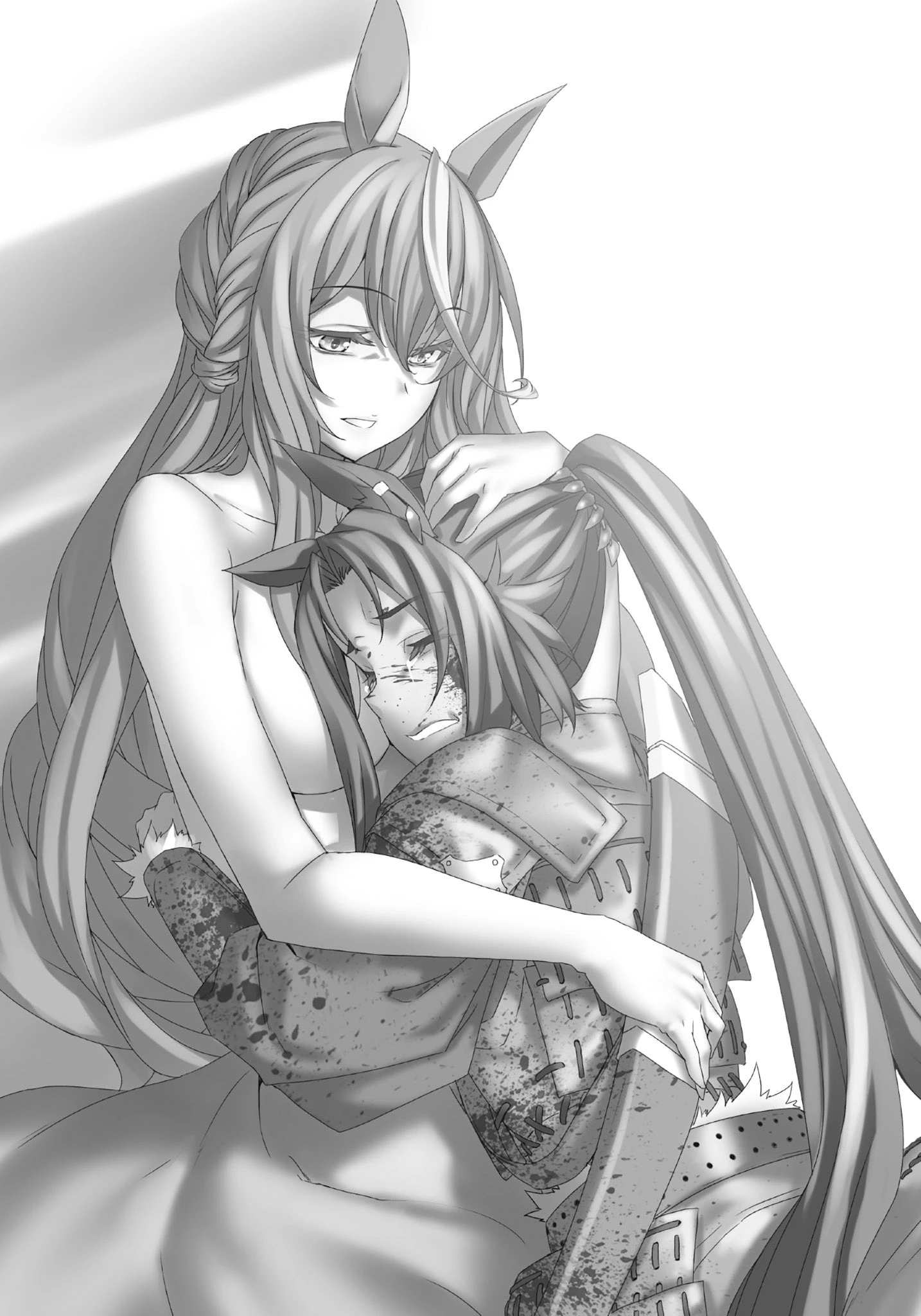 Having returned to Water Town, the entire stadium met her safe return with thunderous applause, eagerly awaiting her arrival on the track. Before she entered the track, however, Silver Blaze was confronted by Priestess, who had been able to deduce that Silver Blaze was the one who killed her trainer and inquired as to her motives. As Silver Blaze confessed and explained her self-defense, she asked Priestess if she was going to turn her in, but was shocked to hear she would not. Instead, Priestess let her know that the Royal Investigator had already told a story about Goblins from Goblin Slayer and had accepted his story as fact. Impressed and indebted to Priestess, she promised to give both her and Goblin Slayer some of her horseshoes, of course, they'd be winning horseshoes from the race she would make to win, giving Priestess time to get back to her box seat so she could watch her race.